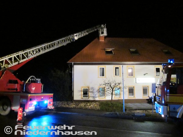 Beim Eintreffen schlugen Flammen und Funken aus dem Kamin. Da das Dach nicht begehbar war, wurde zur Unterstützung die Drehleiter aus Eppstein-Vockenhausen angefordert. Dann wurde von der Drehleiter aus, der Verschluss im Kamin mit einer Kugel geöffnet, der Kamin gereinigt und die Einsatzstelle dem zuständigen Schornsteinfeger übergeben.