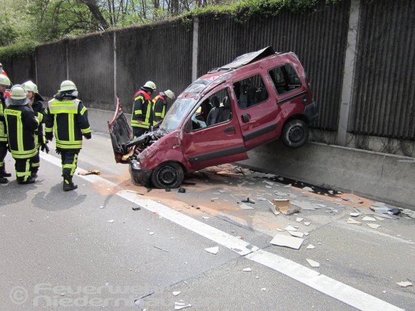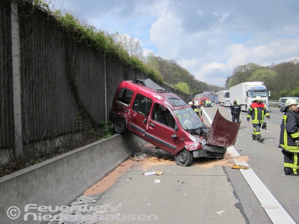 Auf der A3 kurz vor Medenbach hatte sich ein Fahrzeug überschlagen. Gemeldet wurde eine eingeklemmte Person. Der zuerst vor Ort eintreffende Rettungsdienst konnte aber schnell Entwarnung geben. Die verletzte Person war nicht im Fahrzeug eingeklemmt. Dennoch musste auslaufendes Öl mit Ölbindemittel beseitigt und die Unfallstelle abgesichert werden.