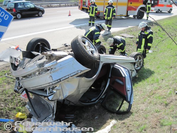 Verkehrsunfall auf der A3 Richtung Süd mit eingeklemmter Person