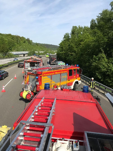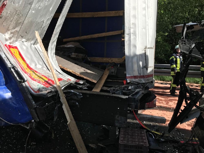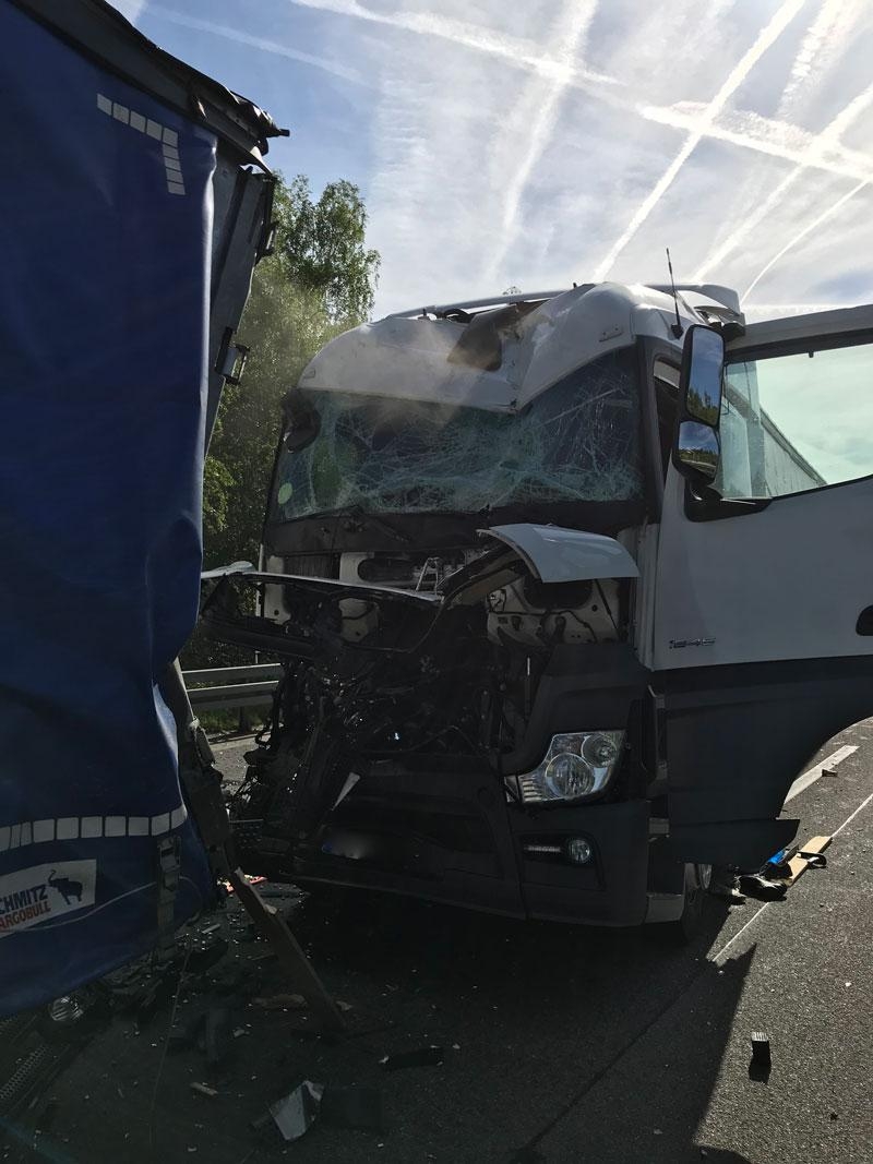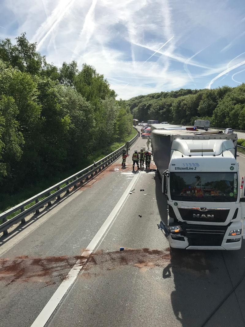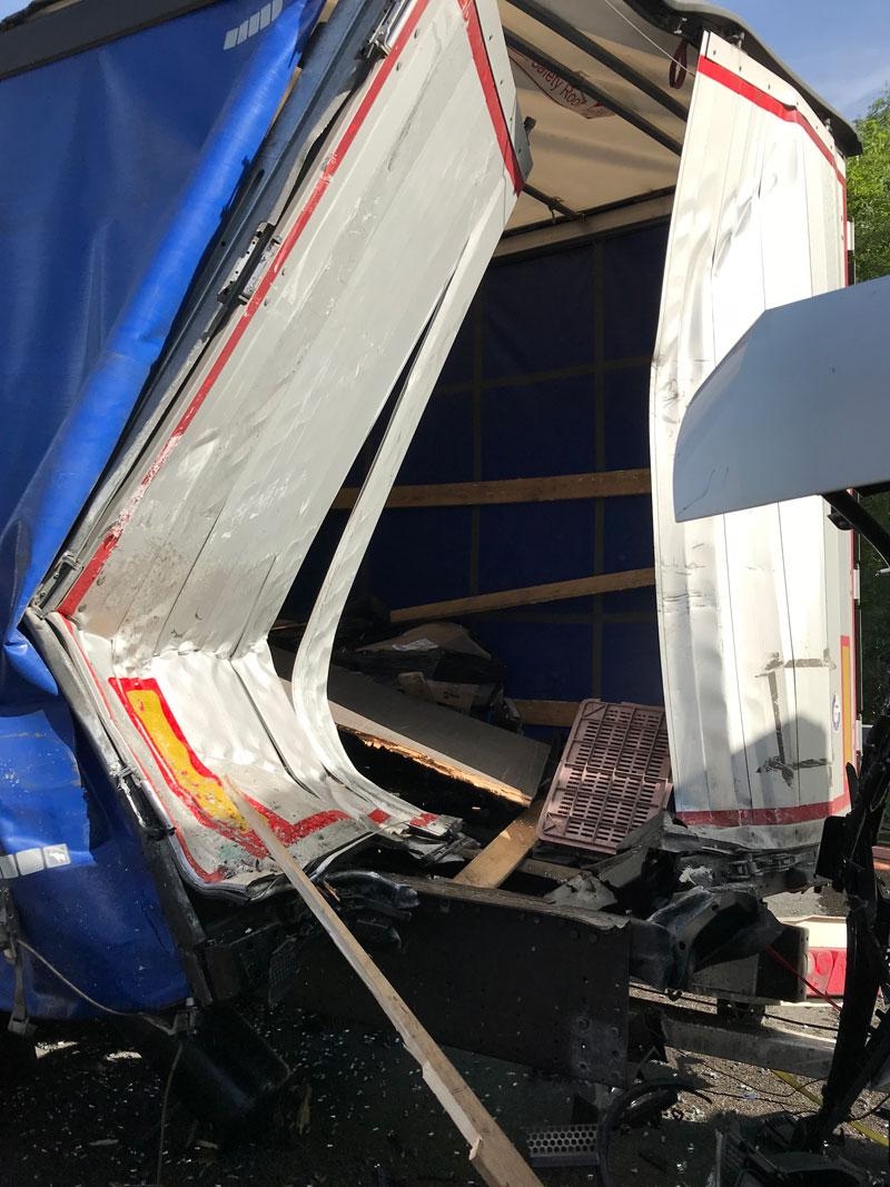 Unfall mit 3 Beteiligten LKW. Die Fahrer waren bereits durch den Rettungsdienst befreit worden. Die Einsatzstelle wurde abgesichert und ausgelaufene Betriebsstoffe mit Ölbindemittel gebunden. Ein LKW hatte geringe Mengen Gefahrgut geladen, welches aber glücklicherweise nicht beschädigt wurde.